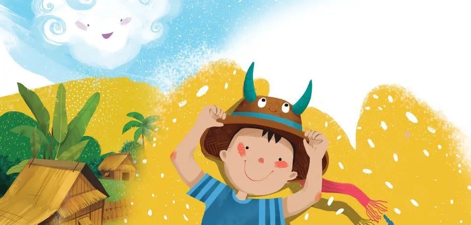 Woooosh! Woooosh! That’s the sound of the wind as Bountong rides across a field wearing his new hat. Accompanied by his buffalo,